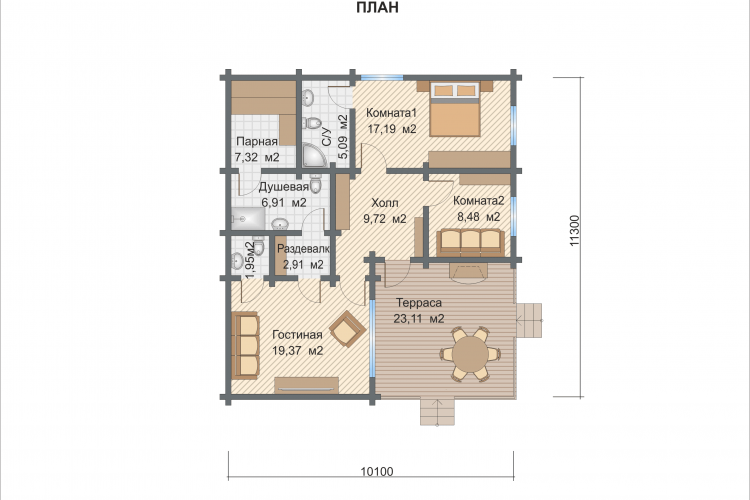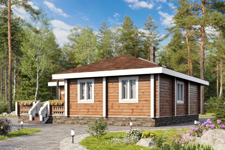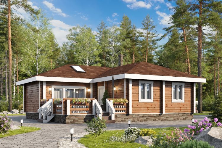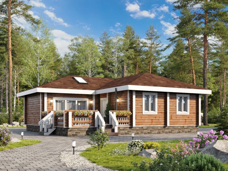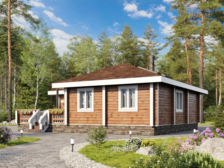 Полезная площадь проекта "Санди" - 102,05 кв.м. По проекту "Санди" - одноэтажное здание, которое также оснащено  и террасой. Площадь террасы - 23,11 кв.м.